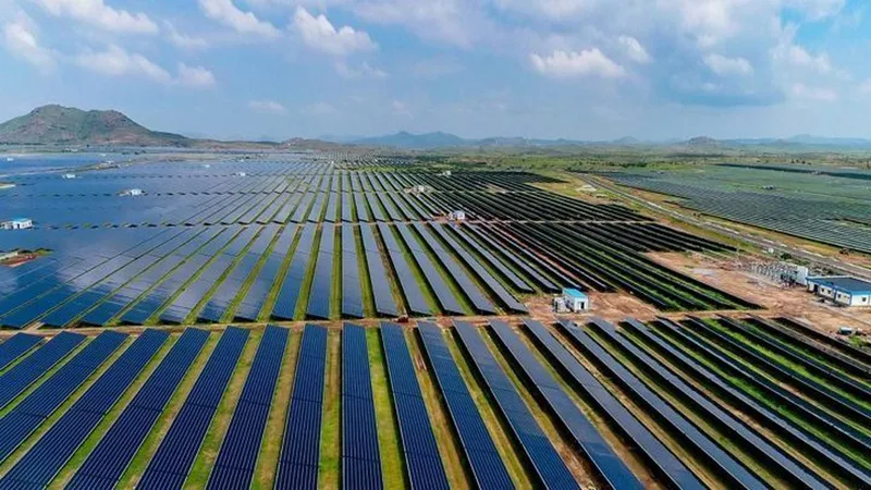 On this unforgiving patch of southern India, millions of silver-gray panels glimmer in the sun, the start of what officials say will be the biggest solar power station in the world.